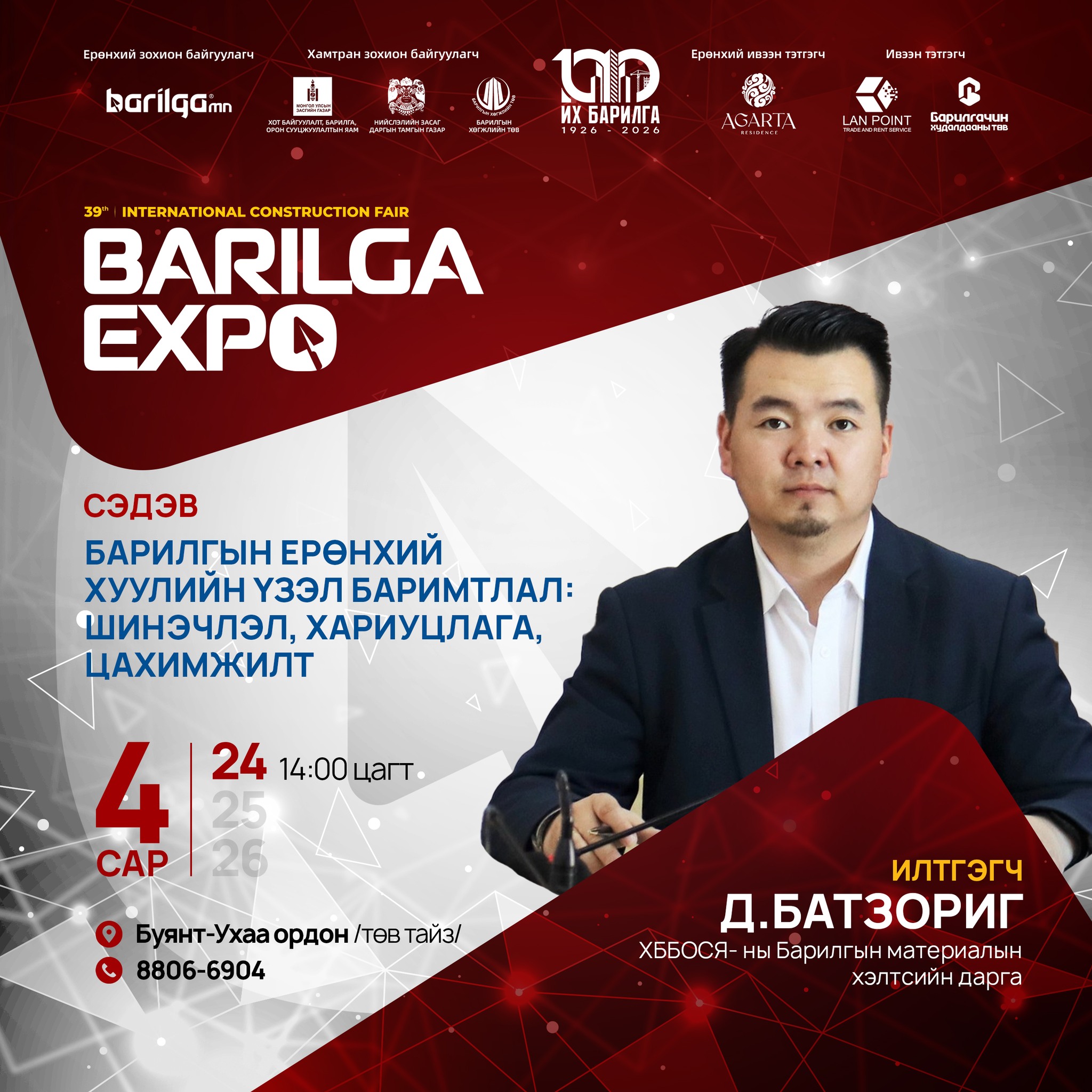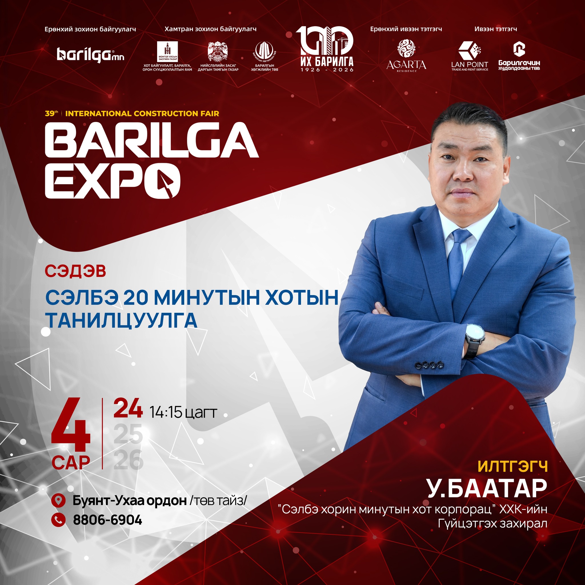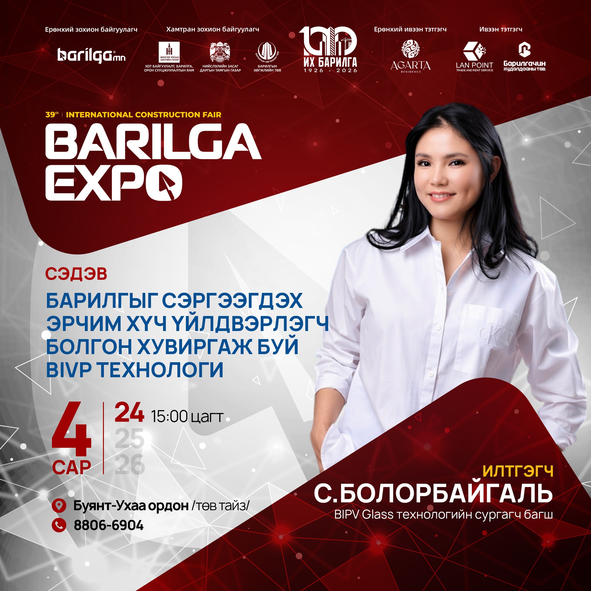 Keep reading39 дэх удаагийн “BARILGA EXPO” олон улсын барилгын үзэсгэлэн яармаг 2026 оны 4-р сарын 24, 25, 26-ны өдрүүдэд Буянт-Ухаа ордонд зохион байгуулагдана. Энэхүү үзэсгэлэн нь Барилгын салбартаа хамгийн нөлөө бүхий, нэр хүндтэй арга хэмжээ бөгөөд дотоодын болон гадаадын нийт 400 орчим байгууллага, аж ахуйн нэгж оролцохоор төлөвлөгдөөд байна.