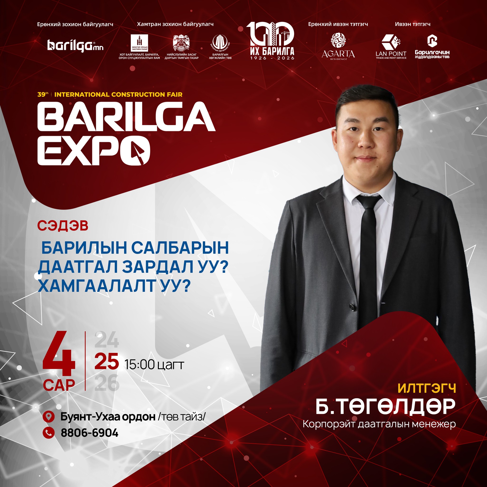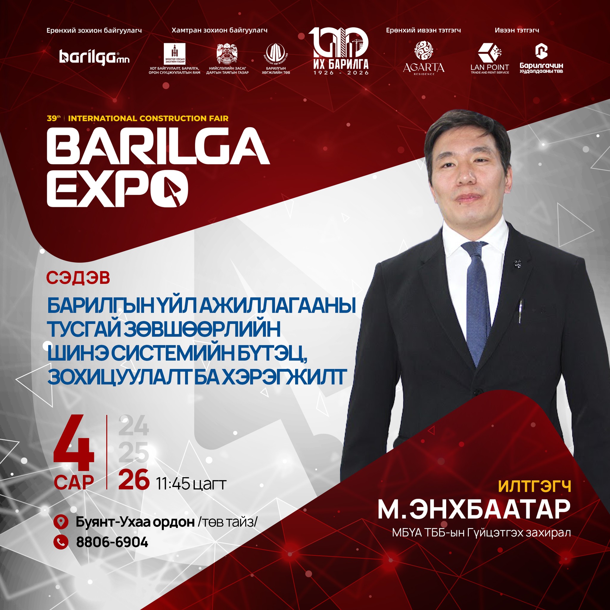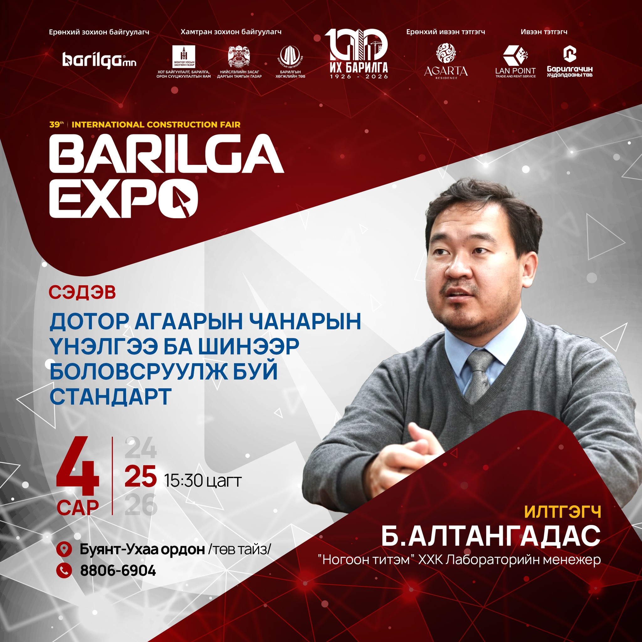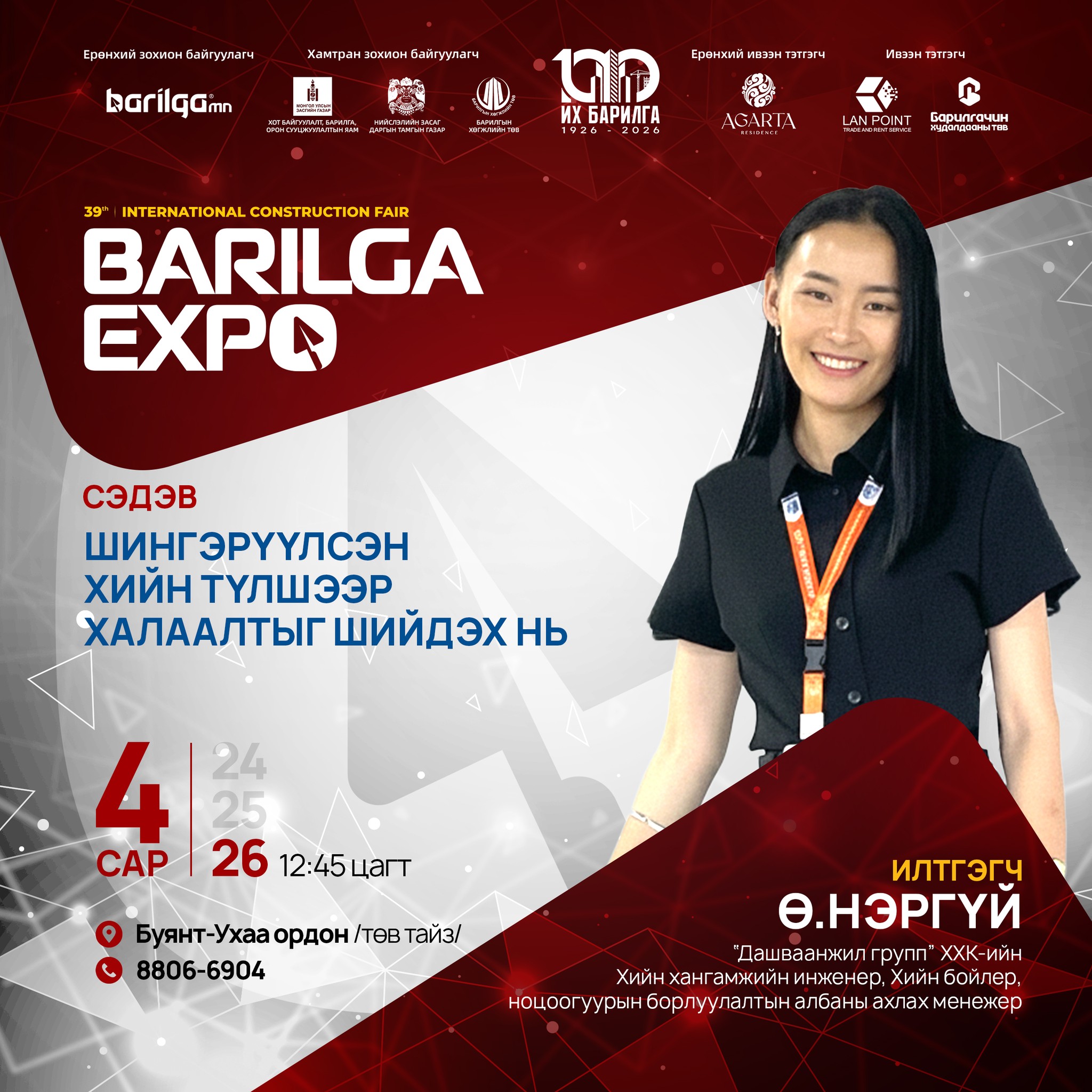 By participating in BARILGA EXPO, our company has a great opportunity to introduce our products and brand to the Mongolian market, expand our business circle, and gain many new customers and partners. This exhibition was better organized and of higher quality than previous years, which gave us, the participants, high satisfaction.